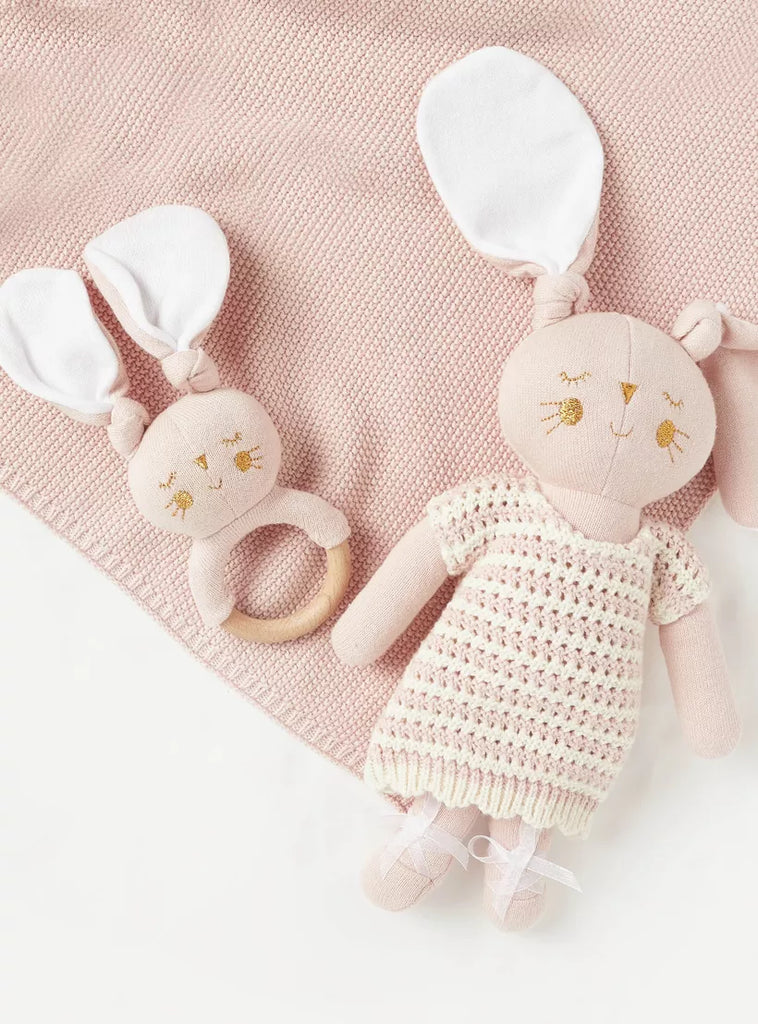 Multipiece set with a blanket, toy and a rattle, Great for gifting, Available in soft color