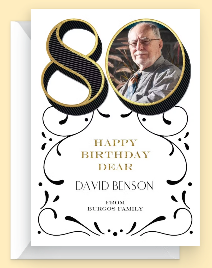 Celebrate life's defining moments with our Milestone Birthday Card, expertly designed to commemorate any age with personalized flair. Simply upload your favorite photo, add your heartfelt message in the text section, and let us handle the rest. Perfect for marking significant birthdays, this customizable card transforms your memories into a keepsake that captures the essence of the occasion. Whether it's a milestone year or a special celebration, create a one-of-a-kind greeting that speaks directly from your heart.