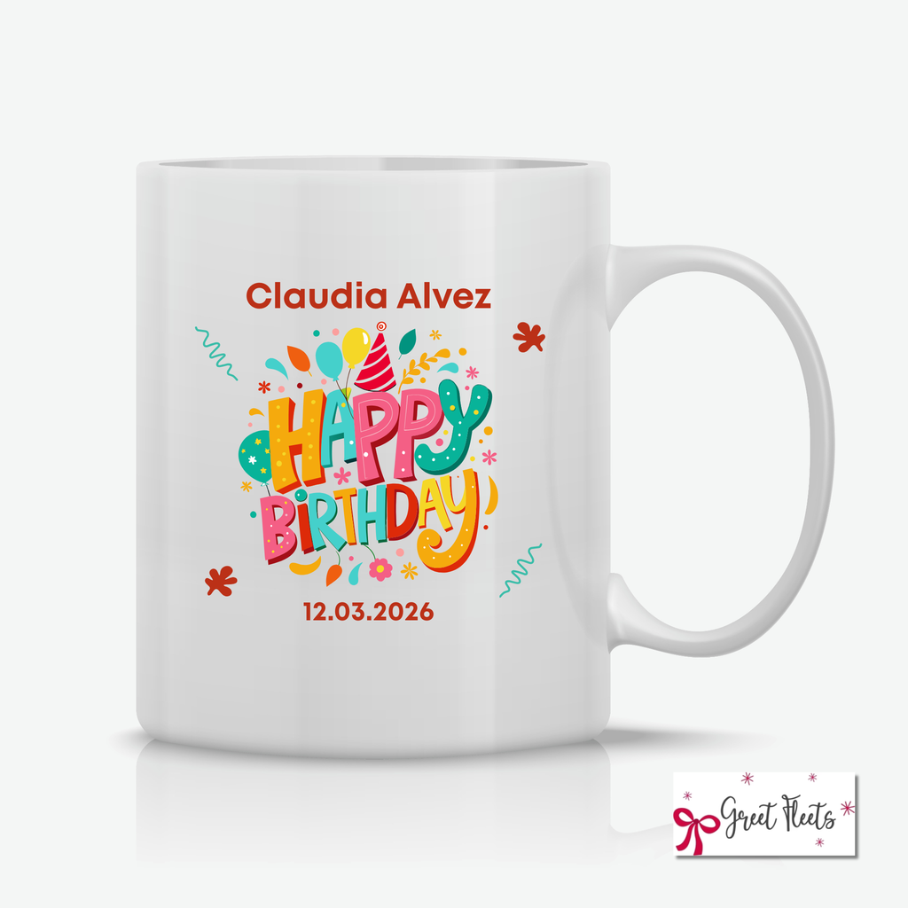 Personalized Birthday Mug – Custom Name & Date Happy Birthday Gift